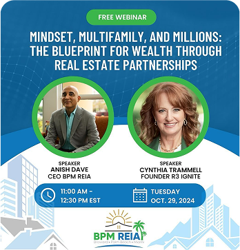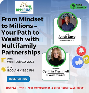 Your Path to Wealth with Multifamily Partnerships and to build serious wealth in real estate—even if you’re starting with limited capital? Join Anish Dave (CEO of BPM REIA) and Cynthia Trammell (Founder of R3 Ignite) for a powerful.