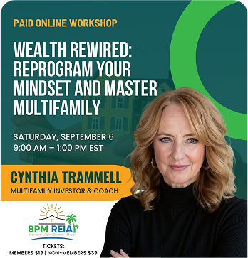Cynthia Trammell has been a tremendous asset to our BPM REIA community. We’ve hosted her for several live webinars, including our monthly meeting, and a Saturday online workshop—and each time she delivers with excellence. Cynthia specializes in small multifamily investing, and her ability to break down complex strategies into clear, actionable steps makes her an invaluable educator. She connects with our members on a personal level, building trust while ensuring her teachings truly resonate. Beyond her knowledge, she has built an outstanding coaching program and consistently presents in a professional, engaging, and digestible way. Cynthia is a phenomenal speaker and coach, and I wholeheartedly recommend her to any REIA, association, or organization looking to deliver real value to their members.